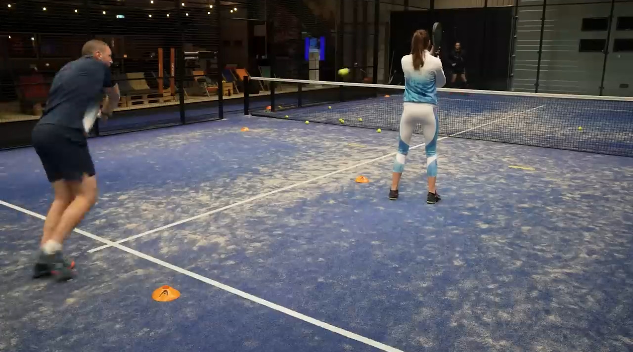 Przy serwisie zawsze ustawiamy się przy środku kortu, nie idziemy w stronę szyby. Spowodowane jest to tym, że jeżeli return jest w środek to będąc przy szybie nie zdążymy dobiec i poprawnie go odebrać, co nie zachodzi jeżeli serwujemy ze środka. Na filmie pierwszy serwis jest wykonany ze złego miejsca i serwujący nie zdążył odebrać returna, natomiast drugi serwis jest wykonany z dobrego miejsca i return jest spokojnie odebrany.